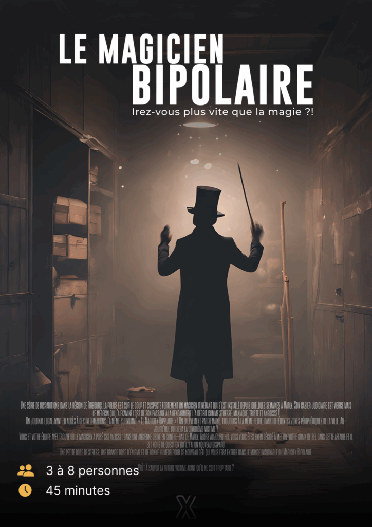 XCape, c’est une expérience immersive où chaque détail compte, chaque minute vous rapproche de la vérité et chaque énigme mettra votre logique à l’épreuve. Entrez dans nos univers thématiques, plongez au cœur de scénarios captivants et vivez une aventure intense, pleine de mystère, de tension et de rires partagés.