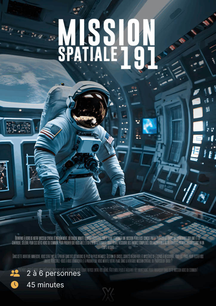 Possible dès 8 ans, à condition que l’enfant puisse rester concentré pendant 60 minutes. Nous recommandons de commencer par la salle “Mission Spatiale 191”.